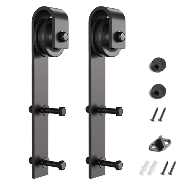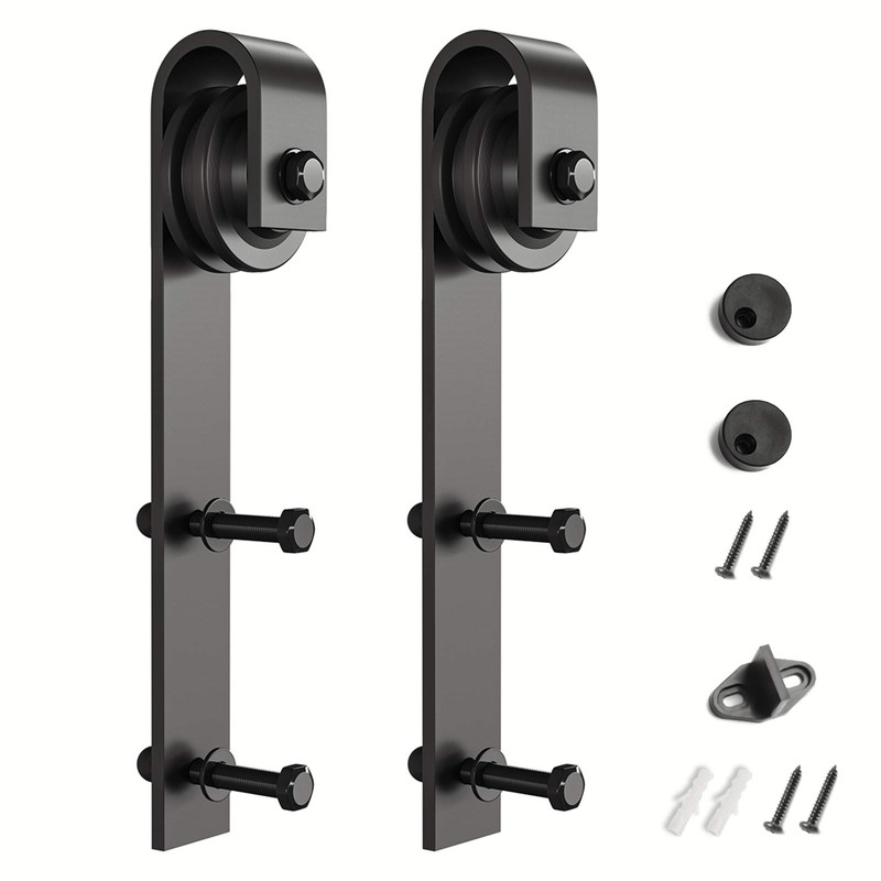 SMARTSTANDARD Sliding Barn Door Hardware Hangers 2pcs (Black) (J Shape Hangers)