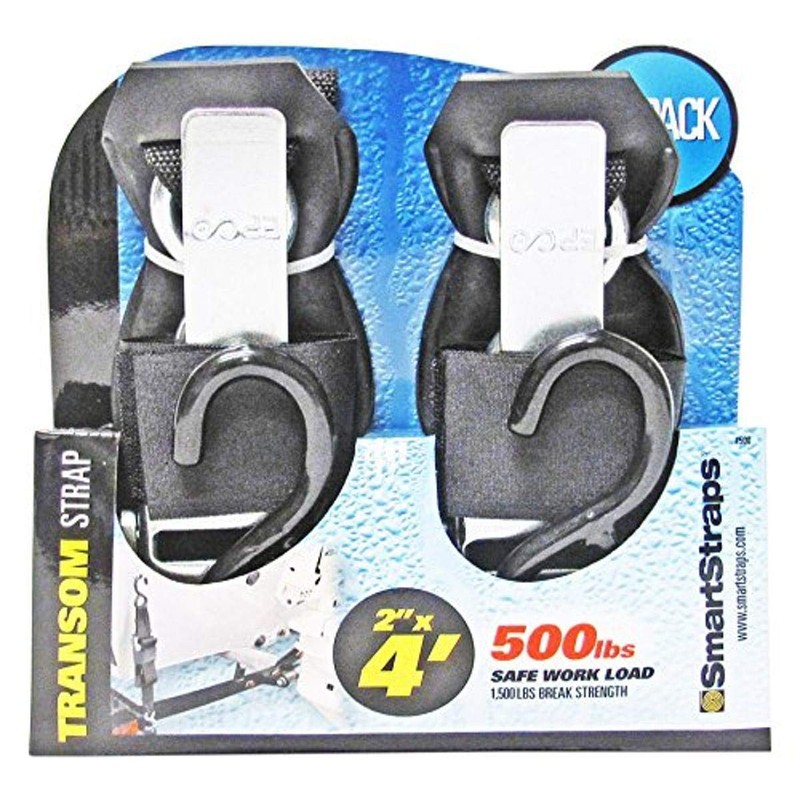 SMARTSTRAPS 500 Black 2" x 4' Transom Strap Marine Tie Down, Small (Pack of 2)