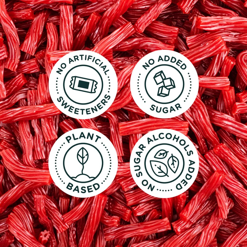 - KEEP CANDY: Our Low Sugar Red Twists are something you can feel good about with 91% less sugar per 50g vs the leading traditional equivalent, no artificial sweeteners, only 2g of sugar per bag and no added sugar.
