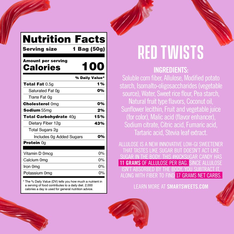 - CANDY YOU CAN FEEL GOOD ABOUT: SmartSweets Red Twists are smartly sweetened with high-quality stevia