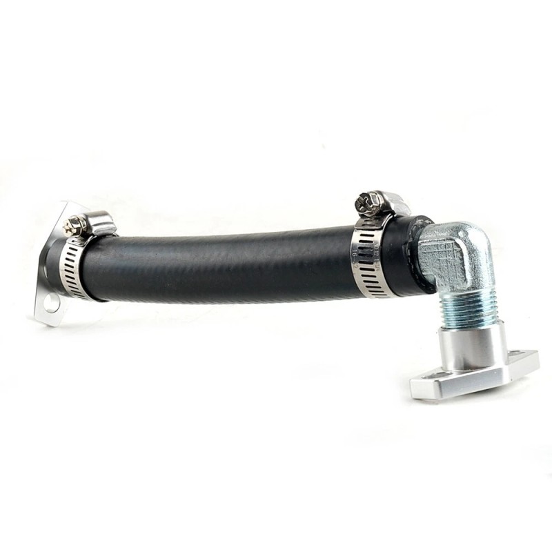 -1 x 45DEG 3/4" Outer Distance Adapter for flange to turbo -2 x 38-44mm long hole to hole with 8mm bolts Oil drain flange kit for turbo and engine side -1 x 90DEG 3/4" Outer Distance Adapter for flange to engine -1 x 3/4" thickness NBR hose ( MAX 250 PSI) -2 x Clamps for NBR Hose |