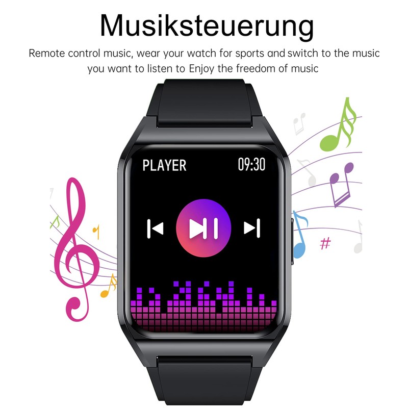 - Health watches and music control: you have a healthier life, an all-day activity tracker that monitors heart rates, blood pressure and records sleep status. You can control music on your smartphone via a Bluetooth connection to play, pause, listen to next and previous songs, and increase or decrease music on your smartphone.