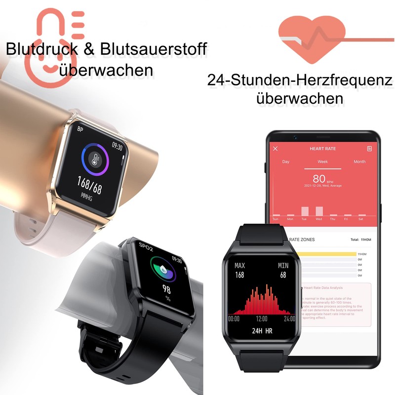 - Compatible and guarantee: Download the app "Da Fit" and install it by scanning the QR code or searching for App Store. The watch supports Android 5.0 and above, iOS 9.0 and above, Bluetooth 4.0/5.1. We offer 24 months product warranty and friendly customer service. If you have any questions, please contact us, we will reply you within 24 hours.