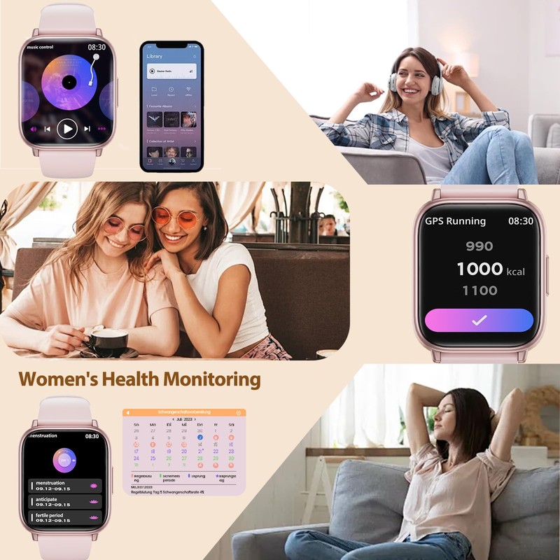 - 【Smart Alltagsassistent & Erinnerungsfunktionen】Diese Smartwatch für Frauen zeigt Wetterdaten an, zeigt Ihr Mobiltelefon an und bietet einen Wecker, eine Stoppuhr, einen Taschenrechner und einen Schrittzähler. Die App erinnert Sie an Wasserpausen, Trainingszeiten, Termine und sogar an Ihren Zyklus, um besser auf sich aufzupassen - der perfekte Begleiter für Ihre Gesundheit und Produktivität!