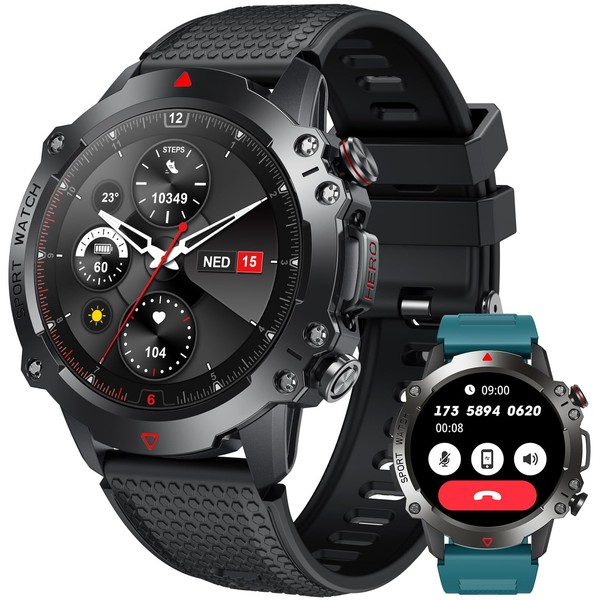 - Fitness watch with 100+ sports modes: the men's sports watch accurately records your steps, distance, calories burned and heart rate all day on your wrist, supports 107 professional training modes, including walking, running, rope jumping, basketball, football, mountaineering, tennis, rugby, golf, yoga, fitness, baseball, hiking, etc., In addition, the men's watches are IP67 waterproof, can be worn on a rainy day or with running water etc.