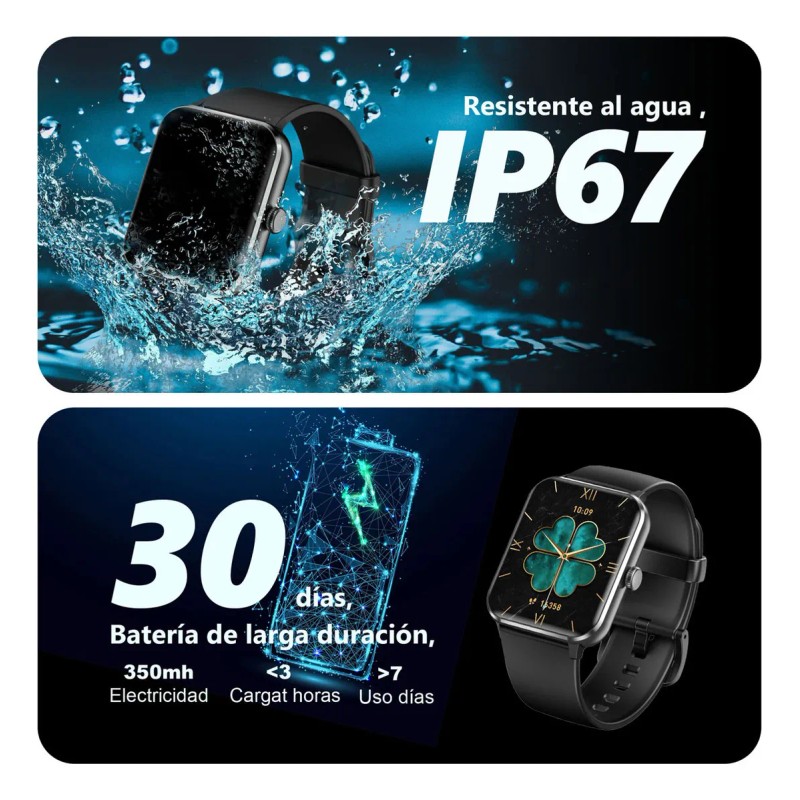 ¡Mantente conectado y cuida tu salud con estilo! El Smartwatch Iowodo BVR50 en color negro te permite realizar y recibir llamadas vía Bluetooth, monitorear tu frecuencia cardíaca, sueño y más. Su diseño deportivo y pantalla táctil de 1.85" lo convierten en el accesorio perfecto para tu día a día. Resistente al agua hasta 50 metros y con una batería de hasta 7 días de duración. ¡Tecnología y funcionalidad al alcance de tu muñeca!