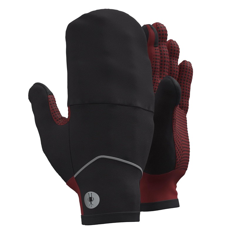 - Soft-brushed Merino next to skin and recycled polyester against the elements balance comfort and protection Nylon wind mitten tucks into pouch at top of hand Reflective elements Silicone grippers on palm and fingers Touchscreen-compatible thumb and index finger Windproof overlay on back of hand