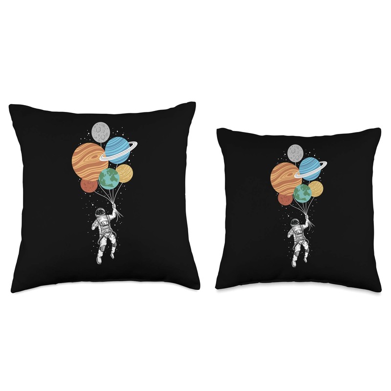 Smarty Pants Designs Astronaut Holding Planet Balloons Solar System Space Throw Pillow, 18x18, Multicolor