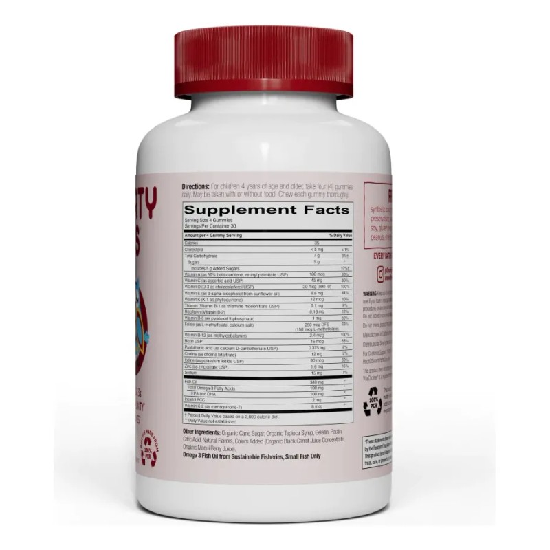 Smarty Pants Kids Formula Multi y Omega 3, multivitamnico, vitamina D3, suplemento de goma de mascar con sabor a cereza y omega 3 en un tarro de 374