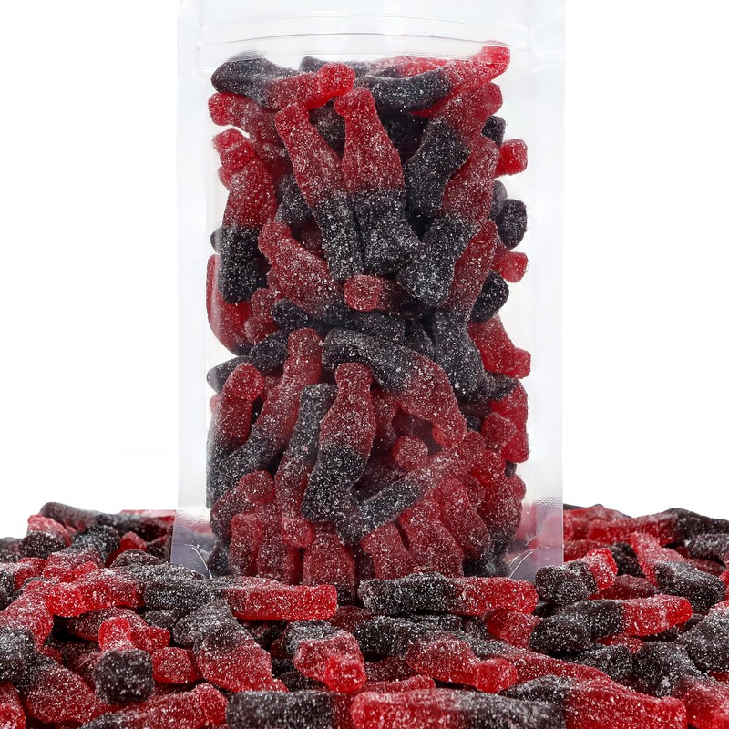 - Enjoy a combination of sweet and sour flavors in every bite of these gummy cola bottles. Each bottle is filled with a sweet cherry taste, then dusted with sour sugar to create a flavor combination that will make your mouth pucker.