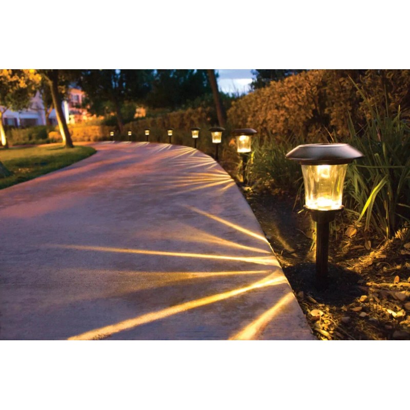 Cut through darkness and brighten up your home’s pathway with SmartYard LED Solar Pathway Lights by ALPAN. Featuring a beautiful design, these solar pathway lights are crafted with durable stainless steel in an oil-rubbed bronze finish and features glass lens. Smartyard solar lights are built to last! Comes with 8 LED solar pathway lights that features a 6 lumen output for each light, to provide maximum energy, while projecting a beautiful pattern of warm white LED light. With its automatic operation and no wiring, installation and use is a breeze! The NI-MH rechargable batteries will provide 8 hours of nightly run time on a full charge! Decorate and brighten up your pathway! BOX INCLUDES: 8 Solar LED Lanterns COLOR: Bronze. DIMENSIONS: 5.9x5.9x18.3 Inches.