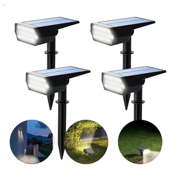 • Cool White Solar Spotlights Outdoor: A nightly light show! Automatically can come on when it gets dark. Really added life to Your trees and Lights up your landscaping nicely.Brighter 53 LEDs with 120° angle adjustable, bigger solar panel & longer working time with rechargeable battery. This solar landscape light is much more durable, Across to light up a larger area and perfect brightness, perfect color compared to other 4-12 LED lights in the market.