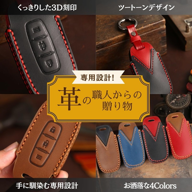 - ■ This product is handmade by artisans using high-quality cowhide leather. It helps prevent the smart key from scratching, and falling