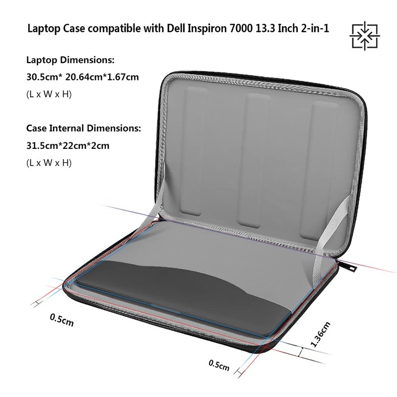 - COMPATIBILITY This hard case fits perfectly for 13.3 inch Dell New Dell XPS 13 Plus 9320/ XPS 13 9310 7390 9305 9300 13.3 inch / Dell Inspiron 7000 13.3 inch 2 in 1, Interior laptop bag dimensions 12.4 inch x 22 cm x 2 cm. (Note: Not compatible with other 13.3 inch laptops.)