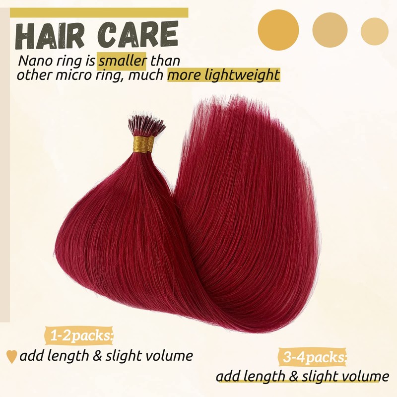 - ➤ 100% Remy Extensions Human Hair :Nano Tip Hair Extensions Adopt 100% human hair materials, NO mixed animal or synthetic hair.No tangles, no shedding, no split ends in our hair,The microbeads have metal-free silicone rings inside that hold the beads and hair in place to avoid falling out and won't hurt your own hair.