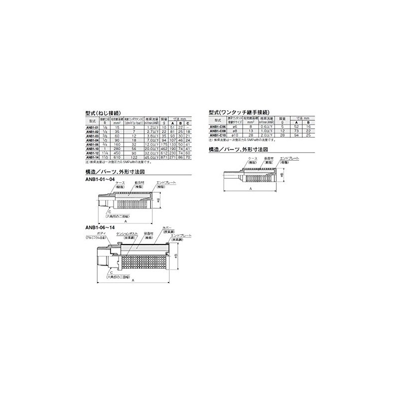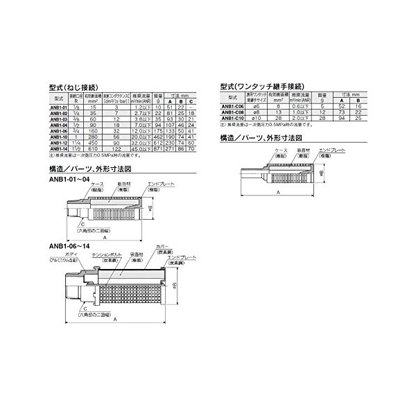 - The ANB1 series has a large effective cross-section area with the same connection aperture as the ANA1 series (38 dB (A)), which can be used for gum exhaust such as manifolds