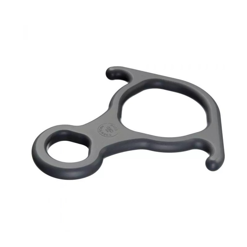 The SMC Large Figure 8 (with ears) is another of our descenders which is very popular with sport and professionals alike. This is the largest of our Figure 8 with ears and it is intended for use with a single or a double wrap of rope up to 5/8'' in diameter. The ''ears'' of this design help to eliminate the potential for ropes slipping up into a girth hitch and also make it easier to ''tie off'' when on rappel, meaning the learning curve is shortened when being trained on this product. The oval carabiner hole doubles as a belay plate for up to 1/2'' rope. Machined from 1/2'' thick, solid aluminum, heat-treated bar and then finished with a very tough, hard anodized finish for extra durability.