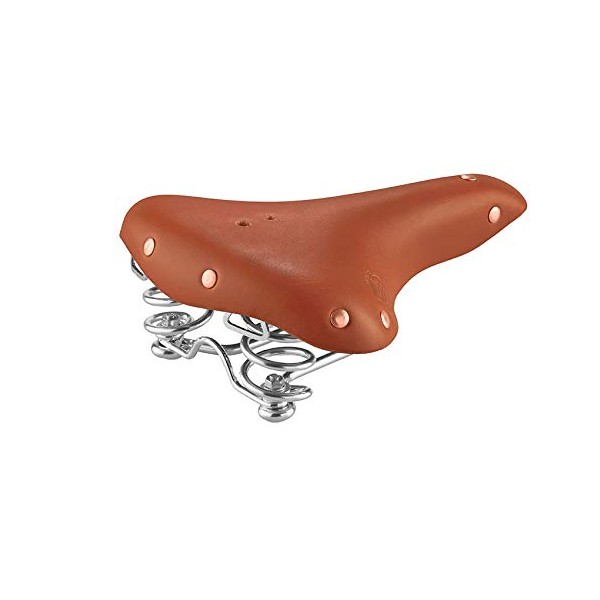 SMC2 Genuine Leather Luxury Bicycle Saddle Vintage City Saddle Trekking Saddle with Spring Frame Made in Italy Light Brown