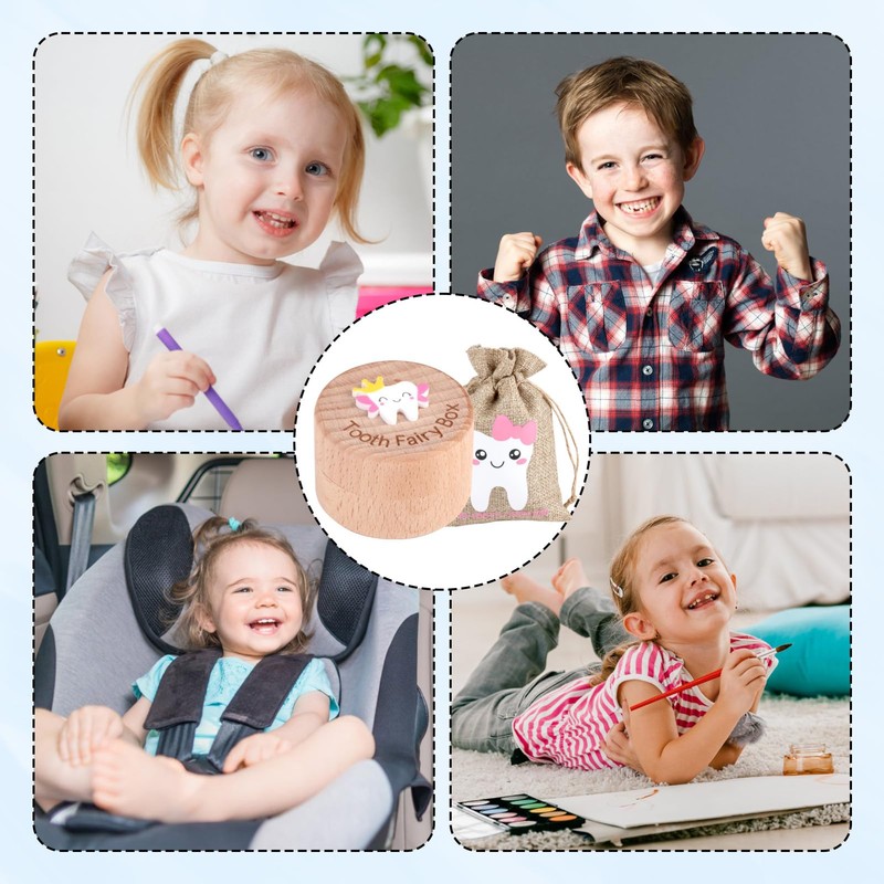 - 【High-quality materials】The tooth fairy pouch is made of safe burlap material and is durable. The wooden tooth storage box is made of high-quality wood, which is sturdy and reliable, providing you with a safe place to protect your child's lost teeth. You can give tooth fairy gift to your child as a growth gift.