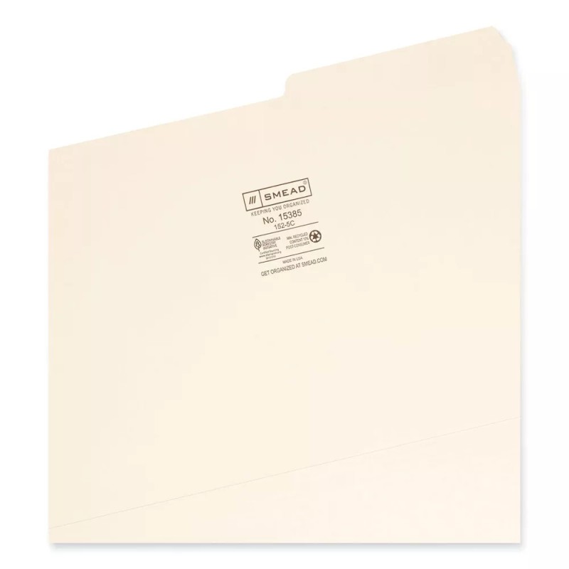 Smead 15385 Guide Height Systems File Folders - Manila/Legal Size (100/Box) New