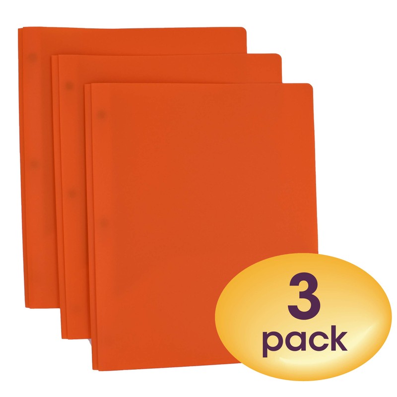 Smead Poly Two-Pocket Folder, Three-Hole Punch Prong Fasteners, Letter Size, Orange, 3 per Pack (87735)