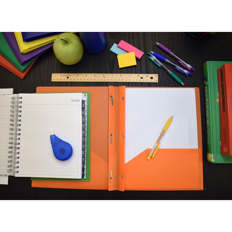 • Includes 3 letter size poly folders (9-3/4" W x 11-1/2" H) with two pockets and 3-hole punch prong fasteners, perfect for school paperwork, forms, and homework