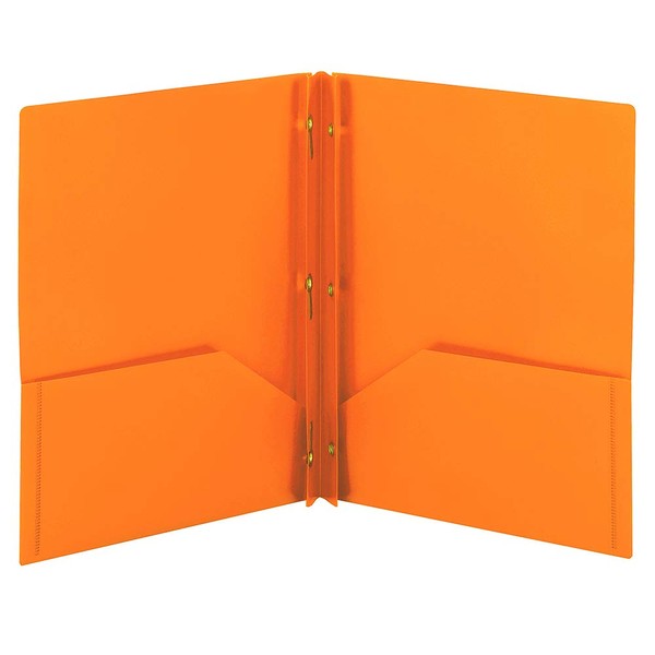 Smead Poly Two-Pocket Folder, Three-Hole Punch Prong Fasteners, Letter Size, Orange, 3 per Pack (87735)