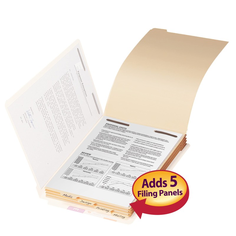 - Includes 50 legal size folder dividers with fasteners (10 of each tab position) that hold 8-1/2” x 14” sheets to create additional filing surfaces as needed in any fastener folder