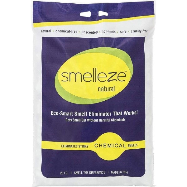 SMELLEZE Natural Chemical Odor Remover Granules can help. Instead of just covering up noxious chemical odors, our amazing stink removing granules absorb and encapsulate harmful smells without fragrances. Chemical odor doesn't stand a chance. Safe for people, pets & planet. This all-natural chemical odor remover really works.