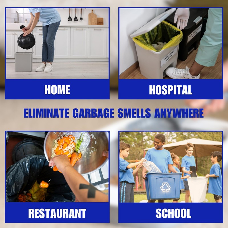 - SIMPLY SPRINKLE GARBAGE SMELLS AWAY: For a fresher trash can, simply scatter SMELLEZE in garbage cans and dumpsters. SMELLEZE eliminates offensive trash odors without using harsh chemicals. It draws in all waste odors like a strong magnet, absorbs them like a sponge, and removes them safely without smelly cover-ups. Due to its porous nature, SMELLEZE has a huge capacity to continuously absorb large amounts of garbage odors.