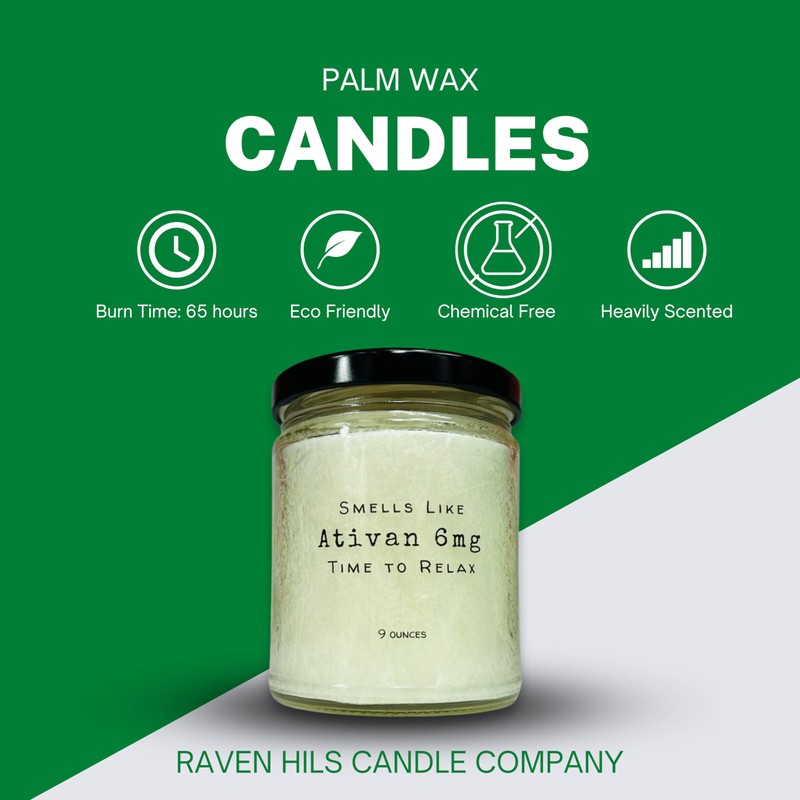 Smells Like Ativan 6mg - Time to Relax | Funny Gift for Nurses, Doctors | Palm Wax Candles by Raven Hils Candle Co | 9 Ounces | Choose Scent (Cowboy)