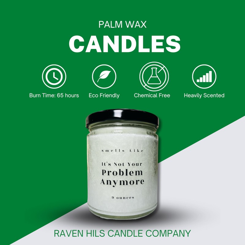 Smells Like Its Not Your Problem Anymore | Funny Candle for Retirement, Divorce | Handmade Dye Free Palm Wax Novelty Candles by Raven Hils Candle Co | 9 oz | Scent - Cranberry Peppermint