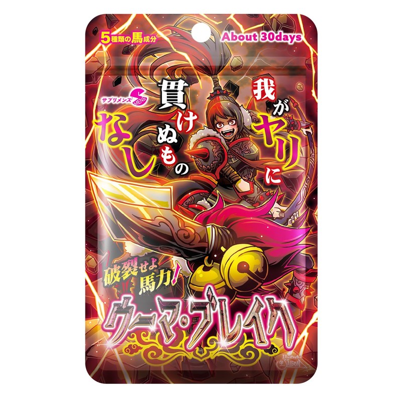 ◆ウーマ・ナーミは、その名を知らぬ者がいないほどの女武神だった。彼女が戦場に立つと、敵味方問わず、誰もがその圧倒的な力に魅了された。「破裂せよ馬力!」の叫びと共に放たれる必殺技「ウーマ・ブレイク」は、どんな盾をも粉砕し、戦場を一瞬で静寂に包む。全てを凌駕する力を持つ彼女に、戦士たちは戦慄と共に恋に落ちた。勝者も敗者も、ウーマ・ナーミの強さと美しさに心を奪われ、彼女に抱かれたいと願ったのだ。その力はただの戦闘技術ではなく、魂の奥底から溢れ出る無限のエネルギーそのものだった。 ◆SMENS(サプリメンズ)史上、圧倒的な「馬」への注目度が高いサプリの登場です。ただの馬と侮るなかれ。事前モニター評価では確かな手ごたえを感じての製品化です。 ◆「破裂せよ馬力!ウーマ・ブレイク」は、こだわり抜いた馬由来成分を中心に配合した栄養補助食品です。馬の心臓粉末をはじめ、睾丸エキス、胎盤、羊膜、臍帯エクソソームなど、5つの貴重な馬成分を使用し日々の健康をサポートします。さらにジンジャーエキス、マカ粉末、パワーミックスブレンド末を加え体の巡りに配慮した独自のブレンドが特徴です。 ◆『自分の力をもう一度感じたい』『年齢を重ねてもイキイキしていたい』『パートナーとの時間を楽しみたい』そんな悩みや願いを持つ全ての男性へ、馬由来成分+αでサポート。日々の自分に自信を持ちパートナーとの時間をより充実させたいあなたに。心身のリフレッシュを応援します! ◆「全てのサプリにパワーを!」それがSMENS(サプリメンズ)の理念です、いつものサプリにプラスアルファで元気をお届けさせてください ◆30粒入りで1日1粒を目安にお召し上がりください(約30日分) ◆品質には妥協を許さないためGMP認定工場で製造。安心の日本製生産で製作者自身も毎日欲しくなる中身にこだわりました ◆SMENS(サプリメンズ)の根幹は「開発者が飲み続けたいサプリ」です