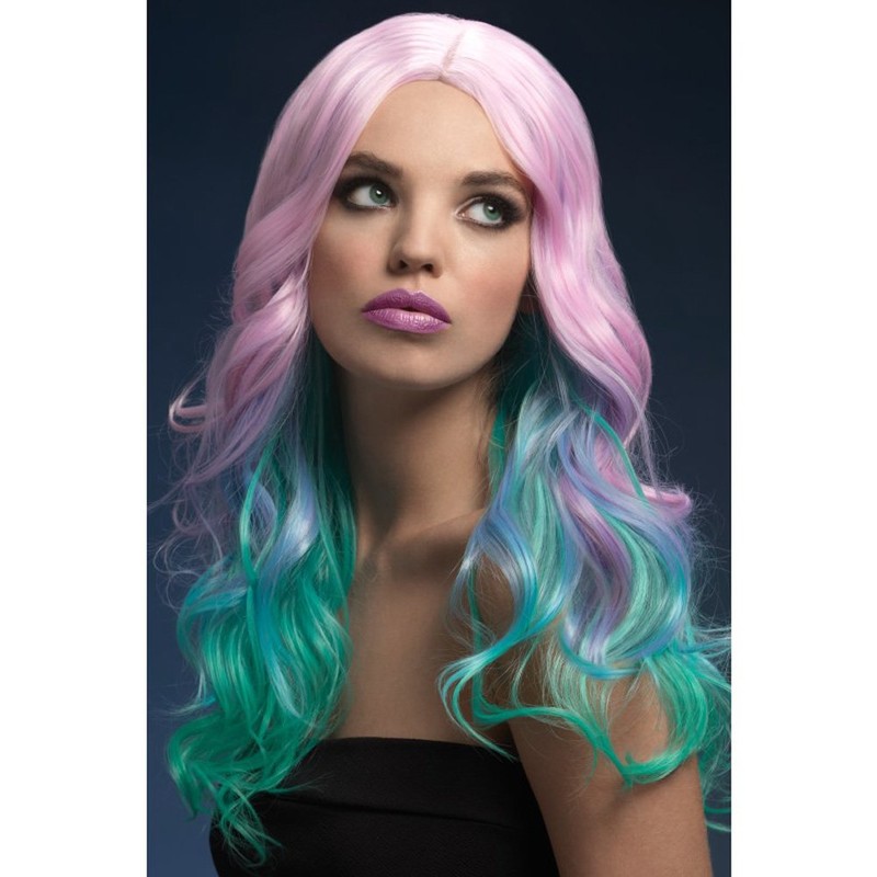 Smiffys Fever Khloe Wig, Pastel Ombre Long Wave with Centre Parting, 56cm/22in, Fever Wigs Fancy Dress, Adult Dress Up Wigs