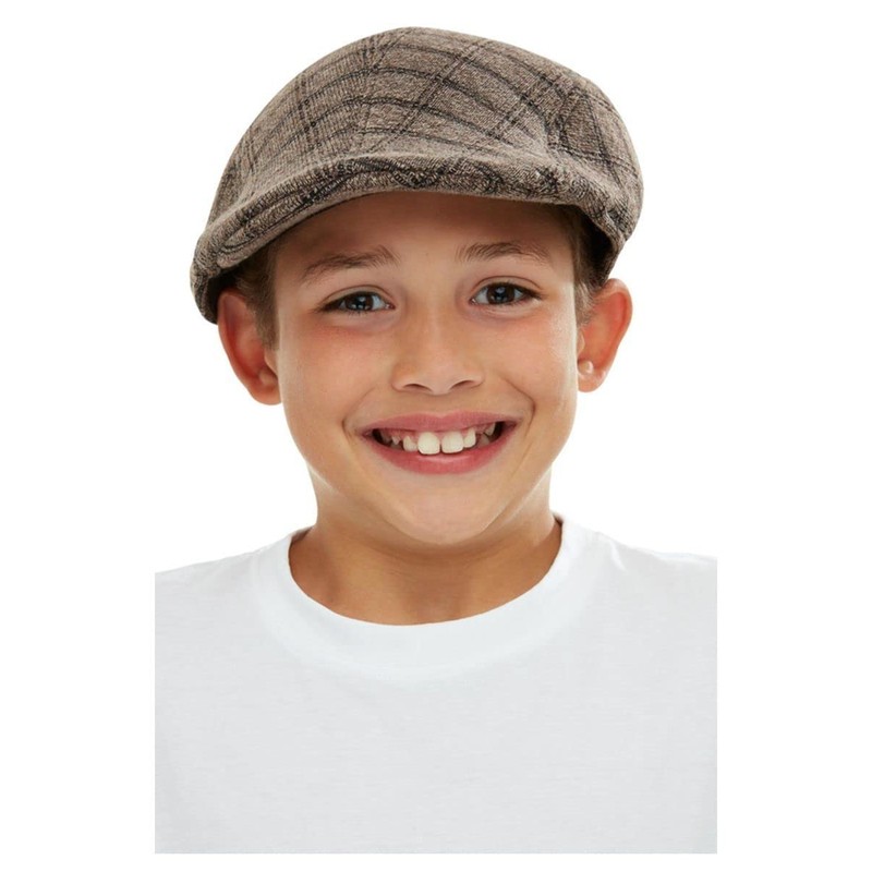 Smiffys Kids Flat Cap, Brown, Black, One Size
