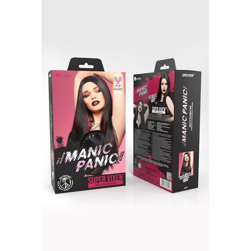 - RED HIGHLIGHTS: The Vampire’s Kiss wig showcases striking red highlights, capturing Manic Panic's vivid hair colours. Perfect for those who love to add a touch of drama and passion to their look with a unique, eye-catching style.