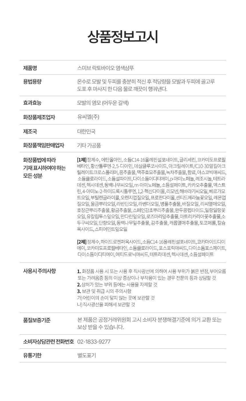 스미브 락토바이오 염색 샴푸 200ml 1 + 1