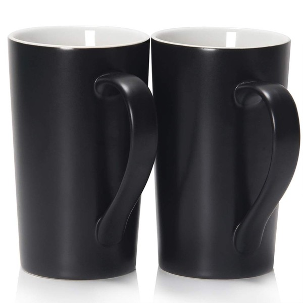 Smilatte 20 oz Large Coffee Mugs, M007 Plain Tall Ceramic Cup with Handle for Dad Men, Set of 2, Black