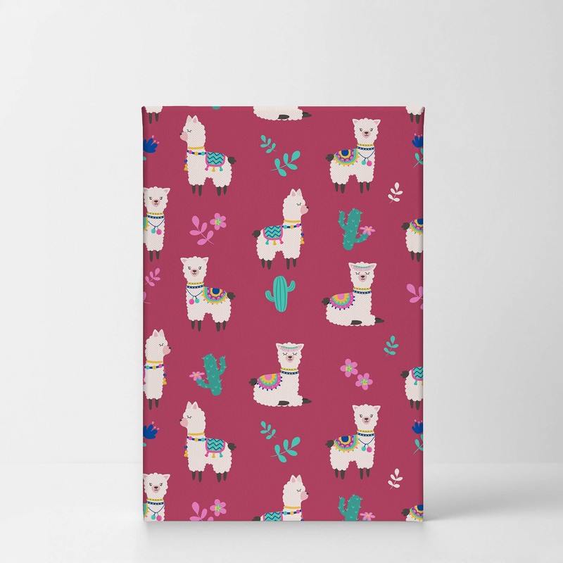Smile Art Design Cute Alpaca and Cactus Illustration Pink Background Canvas Print Kids Room Decor Wall Art Baby Room Decor Kids Room Decor Nursery Decor Ready to Hang Made in The USA 17x11