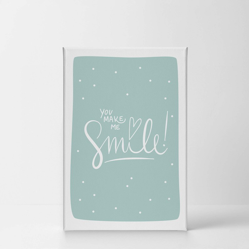 Smile Art Design You Make Me Smile Lettering Turquoise Background Canvas Prin...