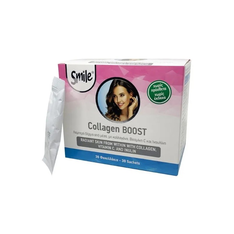 Smile Collagen Boost is a nutritional supplement with a specialized formula designed to support the normal function of the skin and the overall health of the body.