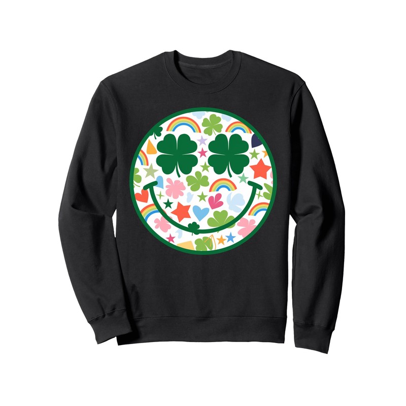 Smile Face Lucky Charm Saint Patrick's Day Shamrock Sweatshirt