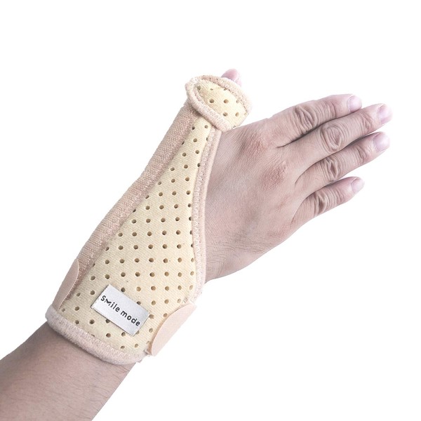 smile mode 親指サポーター 親指サポーター スリムタイプ 親指用 親指固定 メッシュ素材 通気性 ばね指 腱鞘炎 突き指 関節症 捻挫 親指付け根の骨折 脱臼 固定式金属プレート フリーサイズ 1枚 左右兼用 (1種類プレート)ベージュ