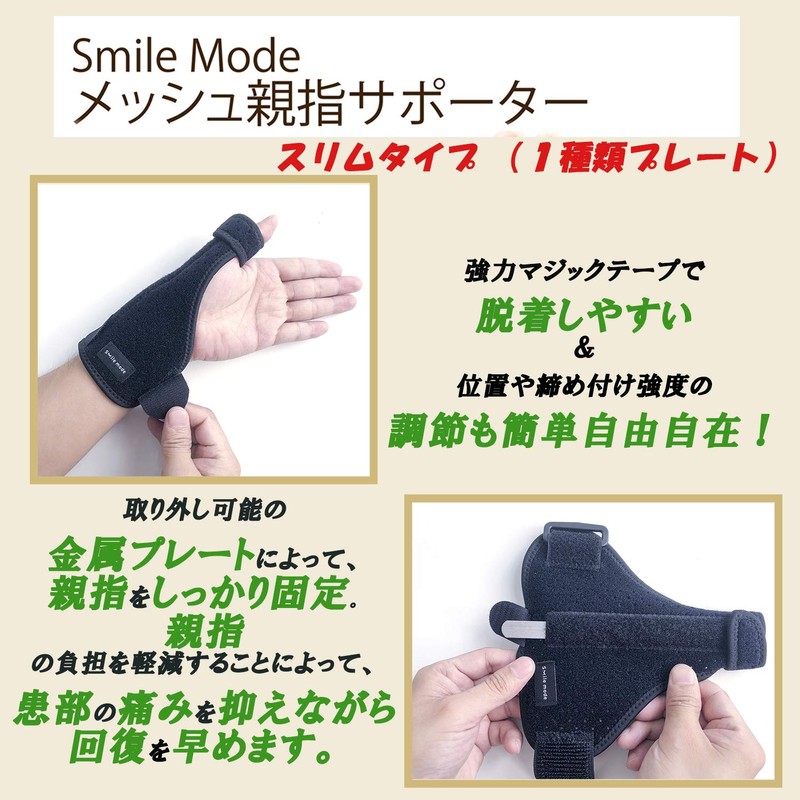 - ✅【大活躍&安心の3か月メーカー保証】 smile modeメッシュ親指サポーターは親指に悩みがあるお客様のために作られた商品ですので、ぜひお試しください。腱鞘炎、スポーツなどの際に突き指・捻挫・骨折した方や、 長時間のパソコン作業をする方、手を使い過ぎて親指が痛くなった方などにおすすめです。 smile modeメッシュ親指サポーターは品質管理を徹底しておりますが、万一商品に不都合があった場合には弊社負担で交換または返品させていただきます。