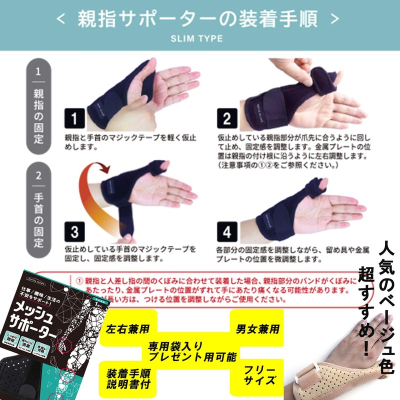 smile mode 親指サポーター 親指サポーター スリムタイプ 親指用 親指固定 メッシュ素材 通気性 ばね指 腱鞘炎 突き指 関節症 捻挫 親指付け根の骨折 脱臼 固定式金属プレート フリーサイズ 1枚 左右兼用 (1種類プレート)ベージュ