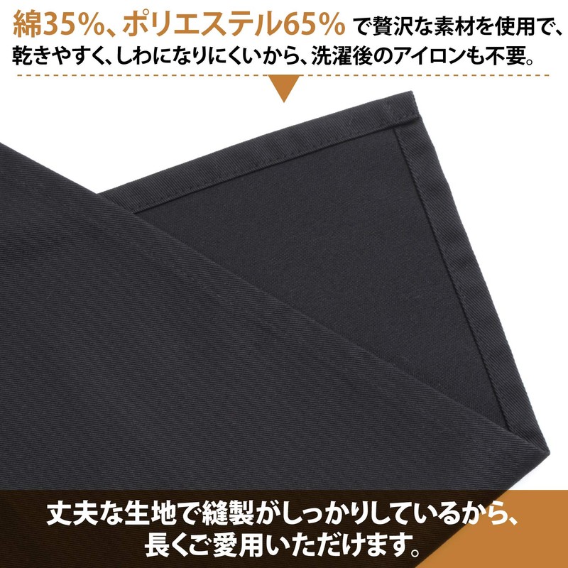 - Smile Mode Apron & Triangle Width Set Features: Wrinkle-resistant so no ironing required; Sturdy and durable fabric for long lasting: The smile mode apron and triangle width are made of 35% cotton, 65% polyester luxurious material. Easy to dry and wrinkle resistant, so no ironing after washing. Durable fabric and strong stitching for long lasting use. *Note: Dry as soon as possible after washing to avoid wrinkles. In addition, to prevent staining, please wash separately from light colored clothing. (Durable Fabric & Sturdy Sewing) The durable fabric is well sewn so you can use it for a long time