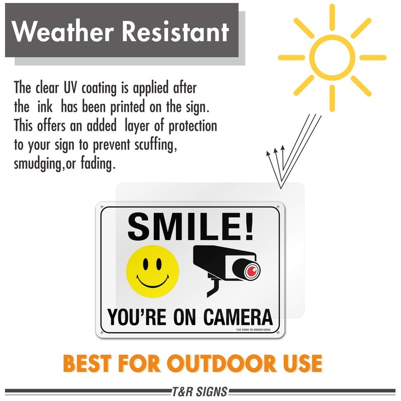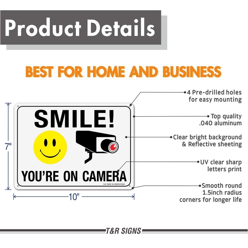 - Includes: Each package includes 2 Smile You're on Camera Video Surveillance signs, excluding attachment accessories such as screws, zip ties, nails ect.