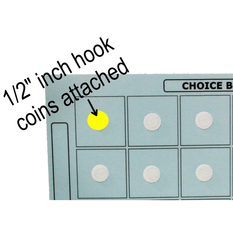• Especificaciones: cada tabla de elección mide 20 x 28 cm y se utiliza con la mejor y duradera hoja de calor laminada de 5 mil en un papel de cartulina de 110 libras. - Cada ranura tiene capacidad para tarjetas de fotos de 1,5 x 1,5 cm. - Cada ranura contiene un gancho de moneda de 1⁄2" (lado áspero). -Cada tabla se puede personalizar como una pizarrón de borrado en seco.