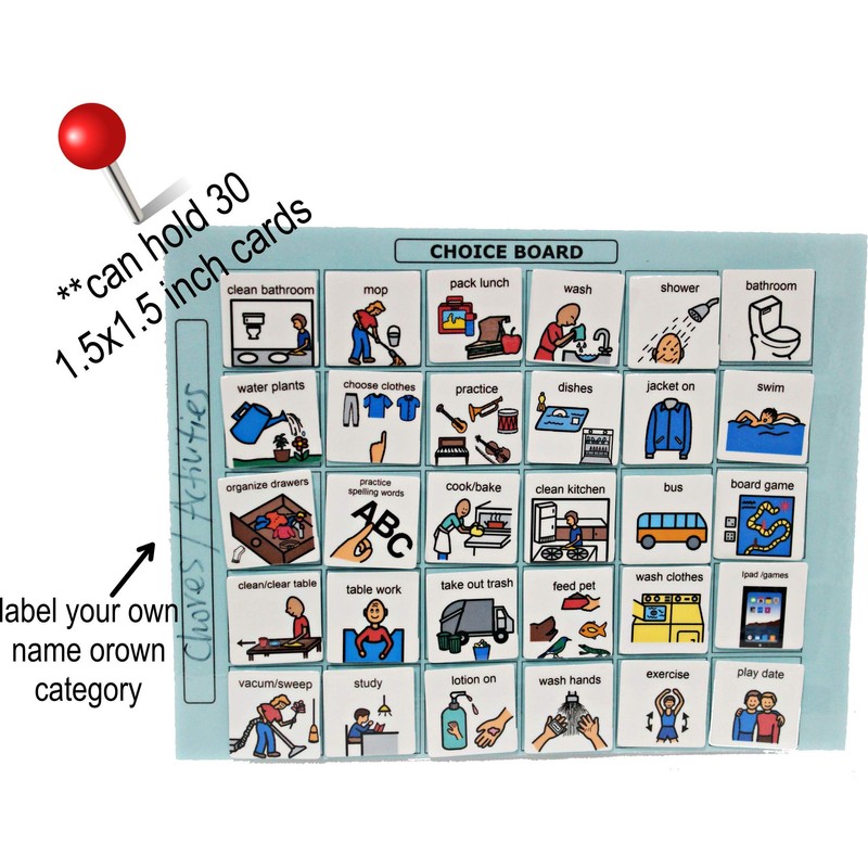 • Gran herramienta para implementar como un tablero de elección que permite a un niño seleccionar entre dos o más opciones. *Las tarjetas no están incluidas (mira mi tienda para ver las tarjetas sueltas que están disponibles).