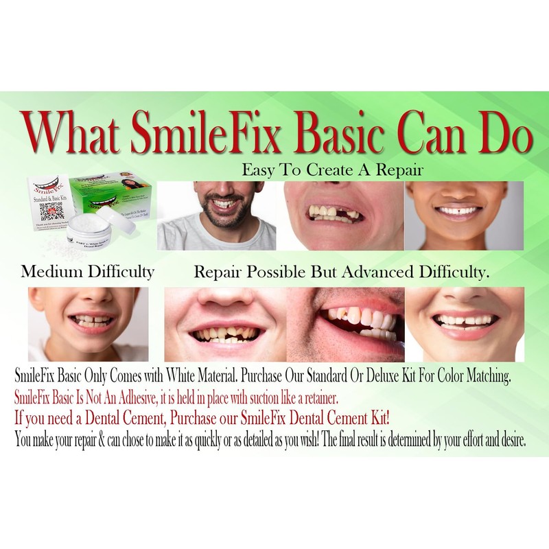 SmileFix Basic Dental Repair - for Missing Or Damaged Teeth - Fix Gaps, Missing Teeth, Spaces, Broken Tooth, Repairs - Fast & Easy - Confident Smiles - BF Products - Durable Compound